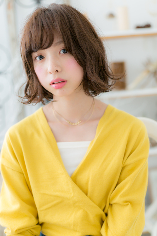 斜めバング♪くせ毛風ガーリーボブ