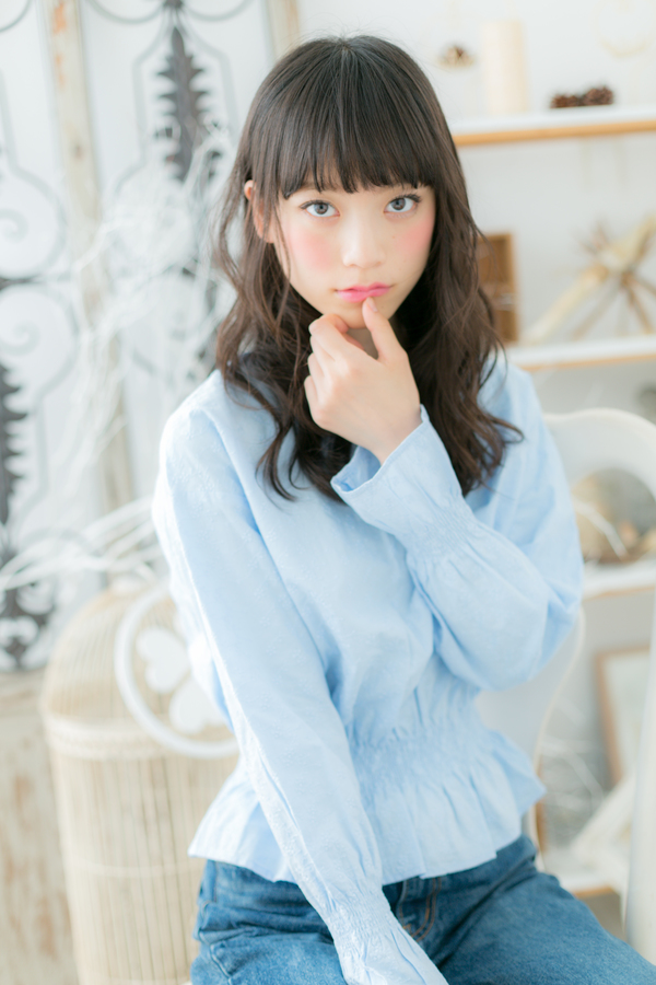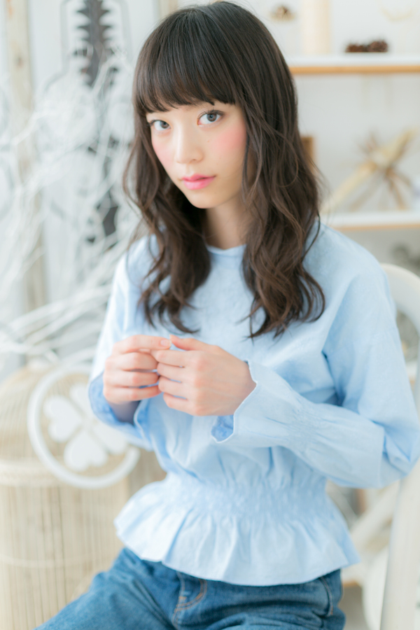 しっとりまとまる黒髪くせ毛風ロング。斜めバングや厚めバングで目元を印象つけたりで大人女子のコーデを完成!無造作なヴェールウェーブ~グラマラスなボリュームカールまで似合います。髪の色は暗めのグラデーションやべージュで30代にもお勧めのヘアスタイルです。(メイク担当:COVERHAIRGROUP棟方)