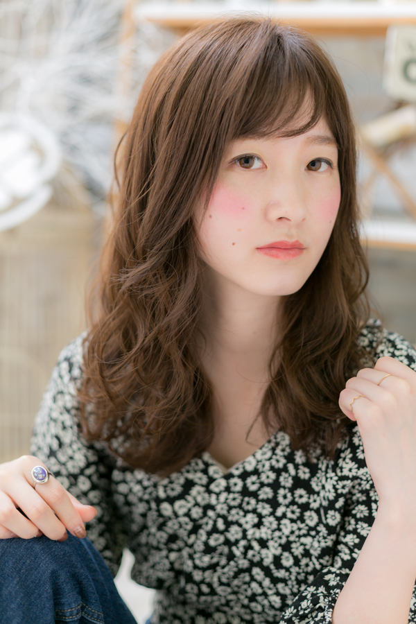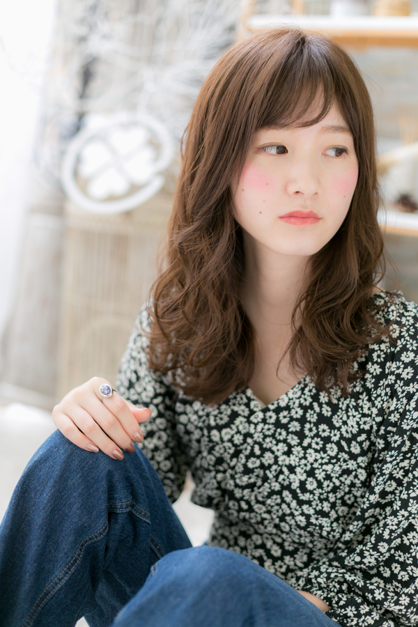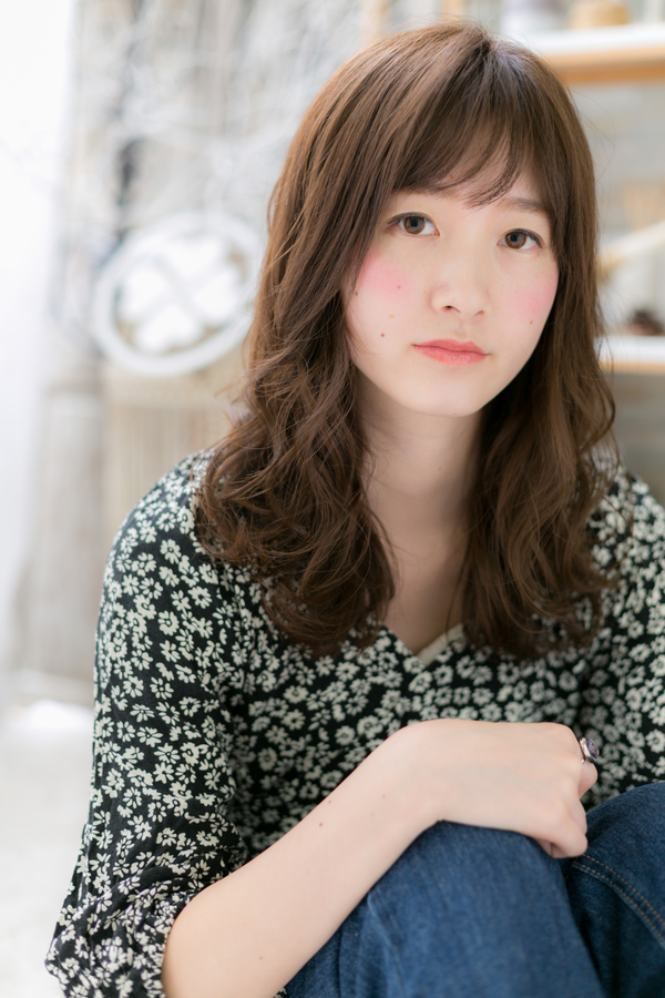 ラフにへアレンジしたい方に◎くせ毛風パーマでやわらかい印象。斜めバングや厚めバングも大人かわいい。前下がりで輪郭カバーして小顔で大人女子のファッショ度UP!トリートメントしたようなカラーリングで髪の毛の悩みも解決!カラーはアッシュグレーやグレージュ。ブリーチなしもおすすめ!340代のエラ張り対策にも◎(メイク担当:mod's上尾店アシスタント磯田)