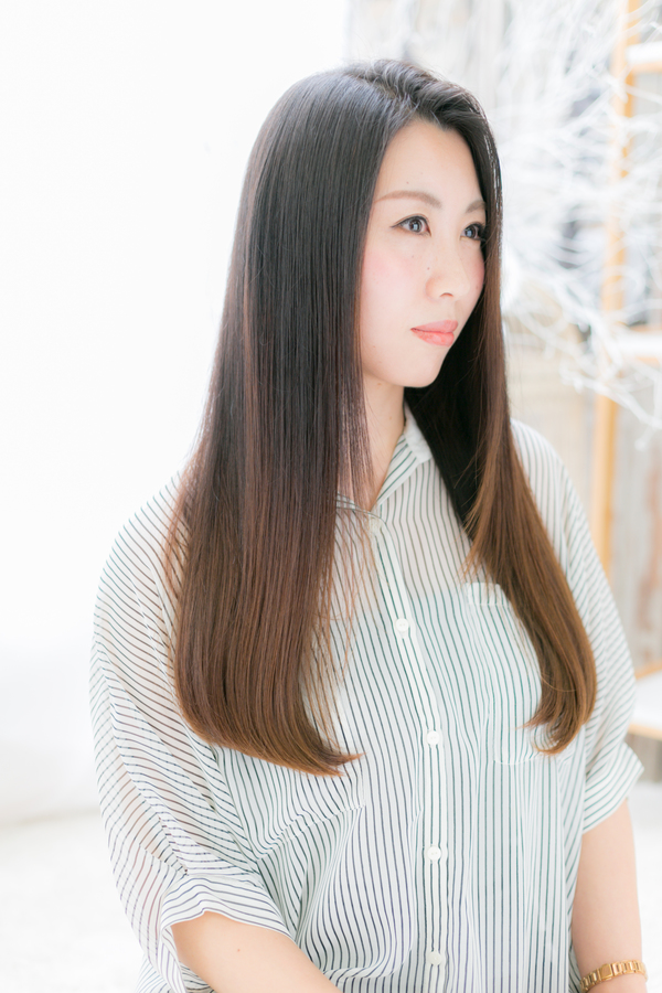毛先までツヤのあるストレート。オイルで仕上げればまとまりGOOD。前下がりで小顔にしたり、ヴェールウェーブで抜け感も◎トリートメントしたようなカラーリングで髪の毛の悩みも解決!人気なカラーやアッシュグレー、グレージュ。ブリーチなしでもおすすめ!30代・40代にも◎