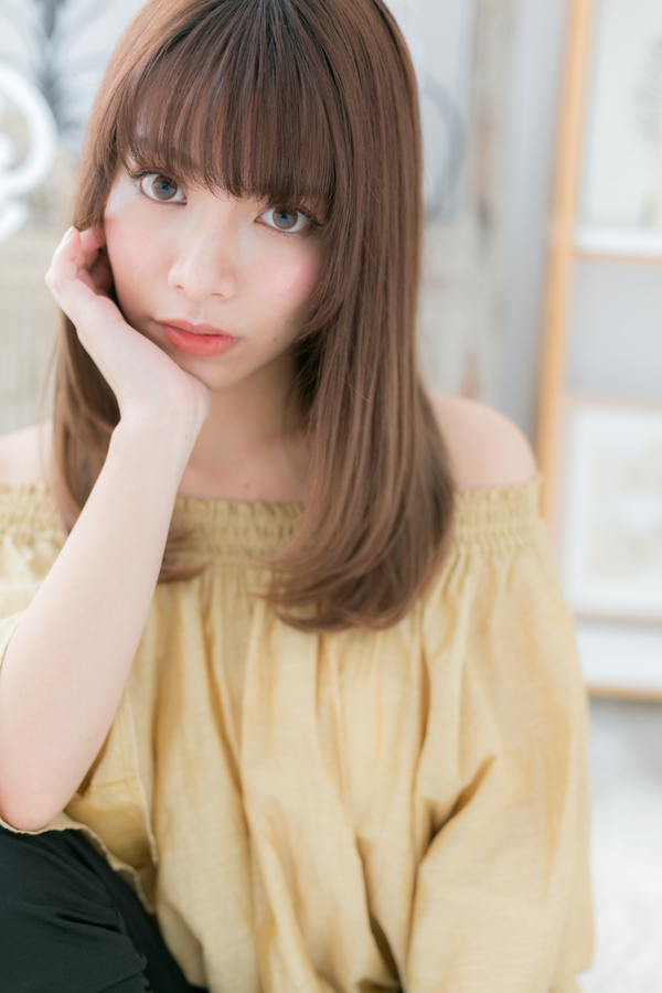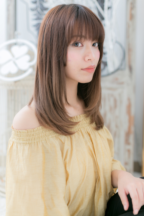 しっとりまとまるワンカールストレート。厚めバングで目力強調し、ツヤ感あるベージュカラーで顔周りを明るし、大人女子のコーデを完成。好感度大の美人顔ロングはオフィスでもデートでもウケバッチリ♪トリートメントしたようなカラーリングで髪の毛の悩みも解決!人気のカラーやグラデーション、ベージュもおすすめ!30代・40代にも◎