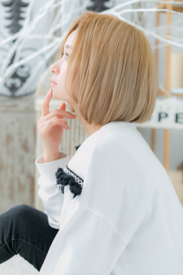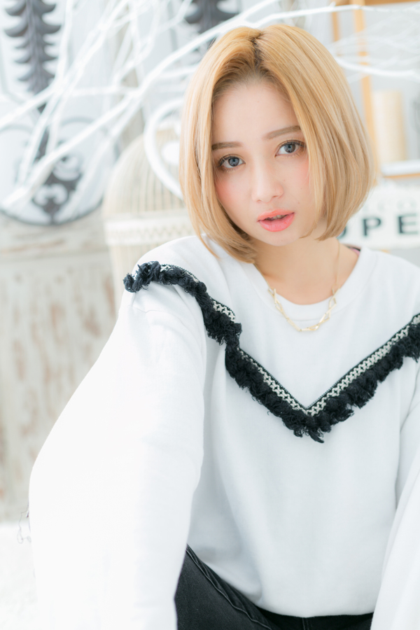 ワンレンナチュラルボブはパッと目を引くハイトーンで個性的&オシャレな大人ボブに。前下がりで小顔見せで大人女子の。斜めバングや厚めバング、耳かけも大人かわいい。くせ毛風にイメチェンも◎(メイク担当:COVERHAIRGROUP棟方)