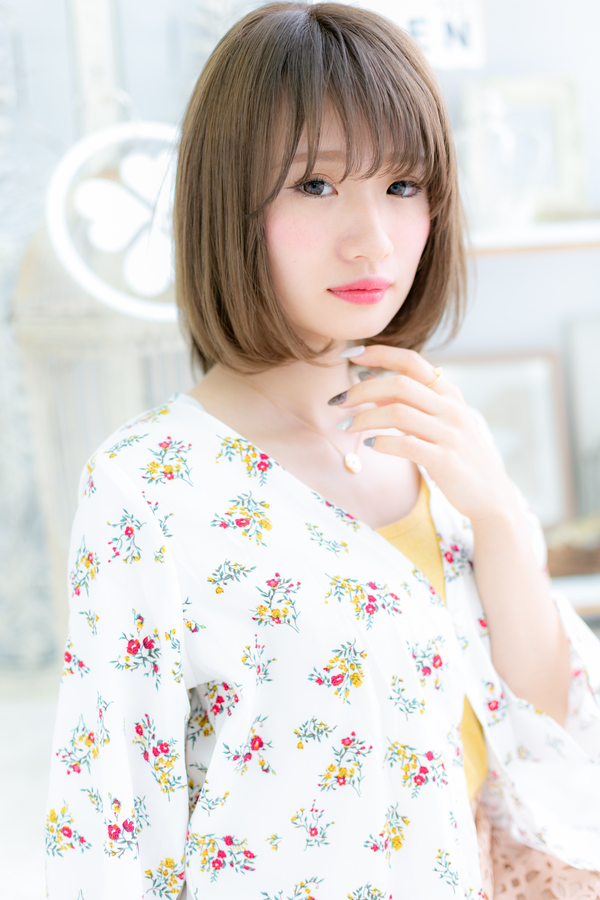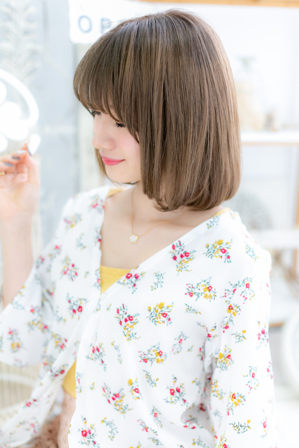 外国人風カラーのツヤ感前下がりボブディ