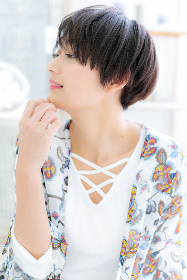 目力UPの斜めバングと小顔見せ前下がりでフェミニンに仕上げた大人ショート。黒髪ベリーショートや丸みショートもトレンド。トリートメントしたようなカラーリングで髪の毛の悩みも解決!カラーはアッシュグレーやグレージュ。ブリーチなしもおすすめ!30代・40代◎(メイク担当:北浦和店 棟方)
