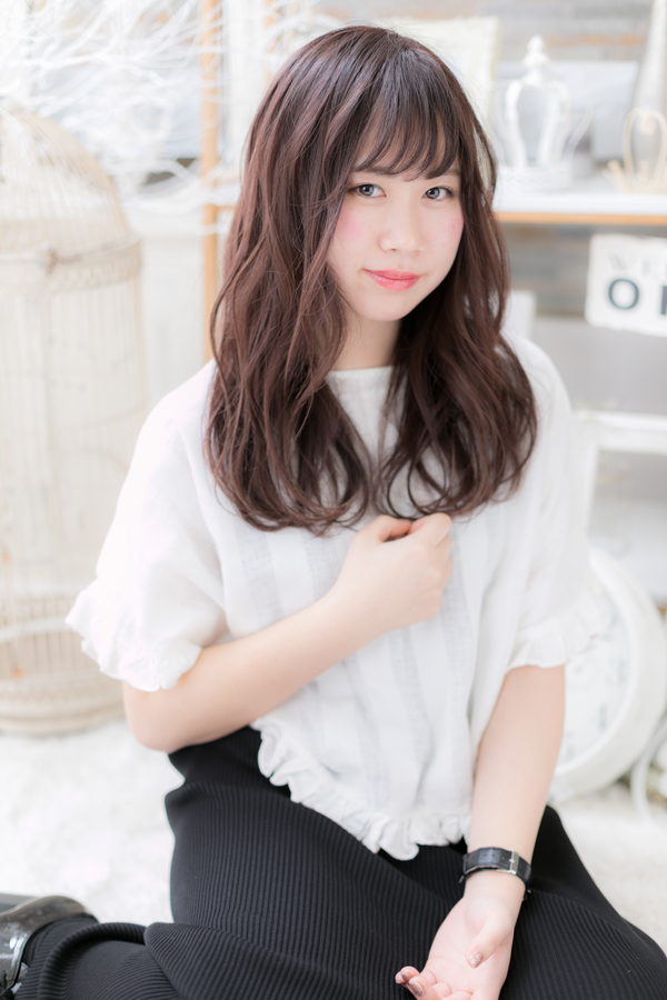 ピンク系のカラーにハイトーンをプラスで透明感♪ラフなくせ毛風ミックスパーマでやわらかさを表現して大人女子力UP。耳かけしたり前下がりやふわミディのヘアスタイルも大人かわいい。トリートメントしたようなカラーリングで髪の毛の悩みも解決!30代・40代にもおすすめ!(メイク担当:COVERHAIRGROUP成田)