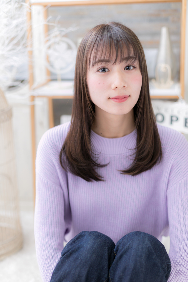 透け感シースルーバングが大人かわいいセミディスタイル♪斜めバングや厚めバングで目力UPしたり、前下がりで小顔見せのヘアアレンジで大人女子のコーデも完成。トリートメントしたようなカラーリングで髪の毛の悩みも解決!人気のカラーや思い通りの茶色カラーもおすすめ!40代のエラ張り対策にも◎(メイク担当:COVERHAIRGROUP棟方)