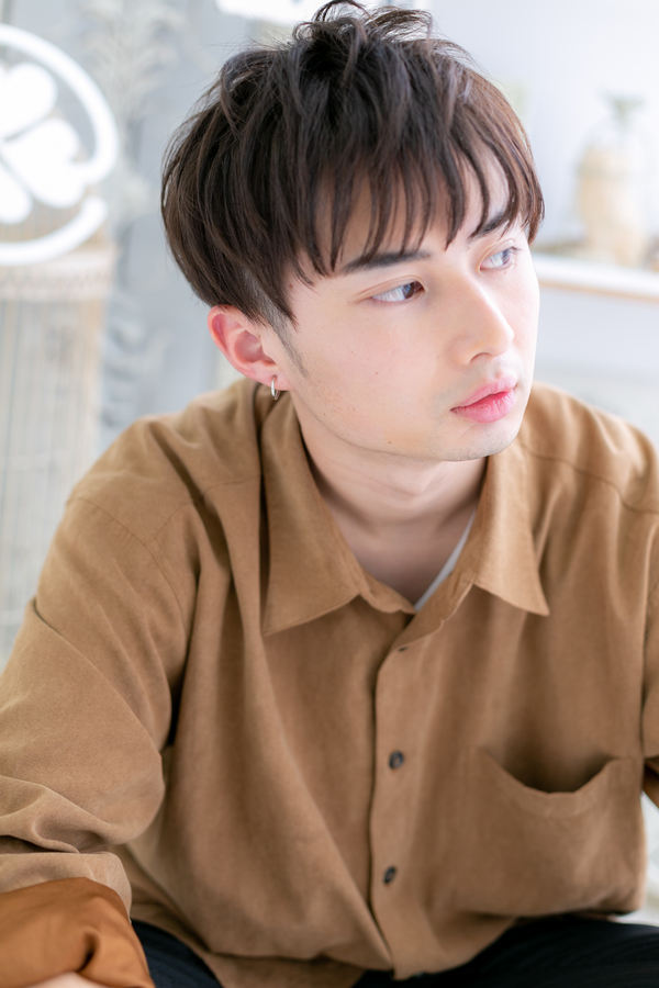 ドライ後,ソフト系ムースやワックスを馴染ませるだけの簡単1分スタイリング/多毛の方は刈り上げやツーブロックで毛量調節を/マットでもセミウェットな質感でもまとまりやすいフェザーマッシュ◎ヒアルロン酸カラーは白髪にも対応可/20代/30代/40代/50代