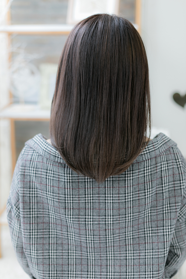黒髪ナチュラルミディは透明感がポイント。オイルトリートメントで保湿をしっかりと♪斜めバングや厚めバングで目力強調したり,前下がりや耳かけで小顔見せが大人女子のコーデを完成。髪の毛の悩みを解決する人気のカラーやアッシュグレー、グレージュ。ブリーチなしもおすすめ!30代・40代にも◎(メイク担当:COVERHAIRGROUP棟方)