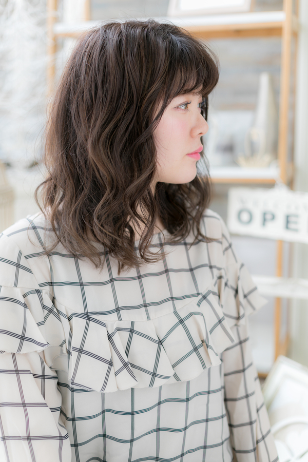 黒髪の重めスタイルは、くせ毛風パーマでニュアンス感ある動きを出して重軽MIXなヘアスタイルに。斜めバングや厚めバングで目力強調したり、前下がりで小顔にしても大人女子のコーデを完成。髪の色は暗めのグラデーションやベージュで髪の毛の悩みも解決!30代・40代にもおすすめ!(メイク担当:COVERHAIRGROUP成田)