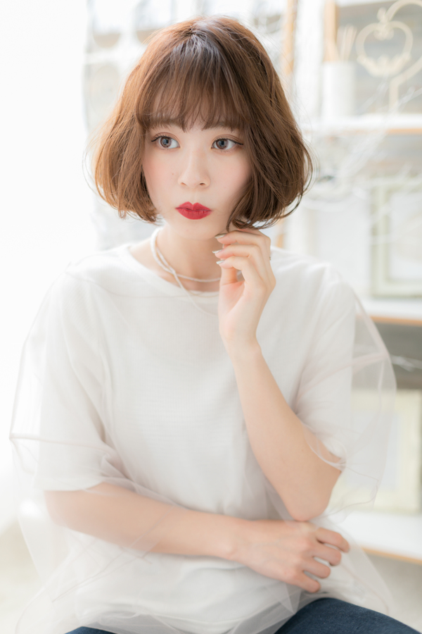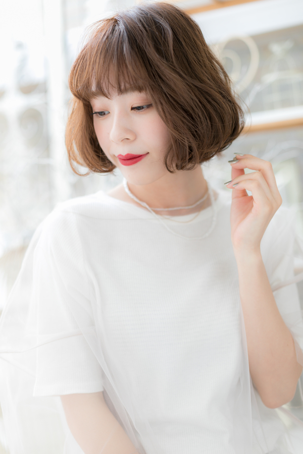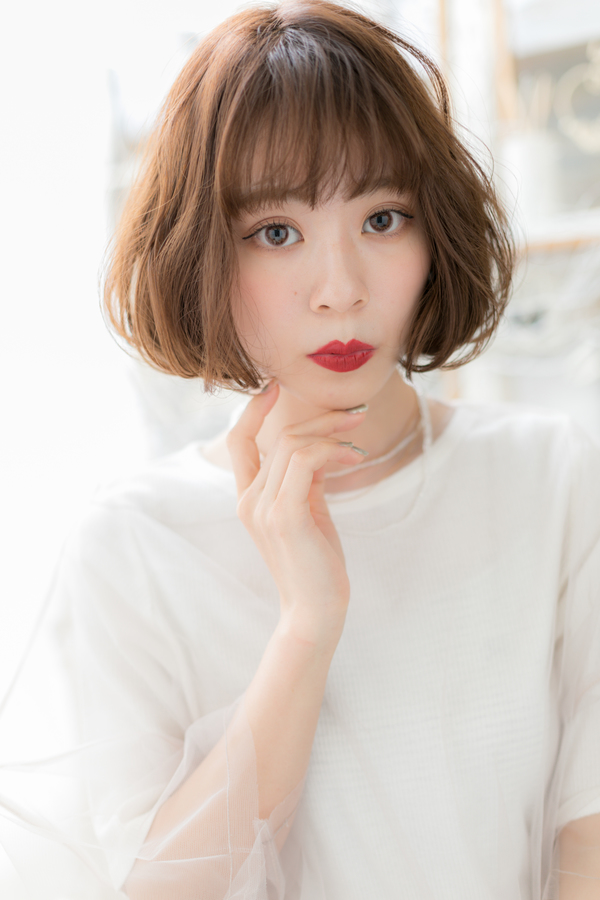 動くたびにふわふわ揺れるエアリーボブ。無造作に動く毛先でこなれ感演出。ナチュラルボブやフェミニンボブ、大人ボブや前下がりボブなどイメチェンも楽しい。耳かけも大人かわいい。(メイク担当:COVERHAIRGROUP棟方)