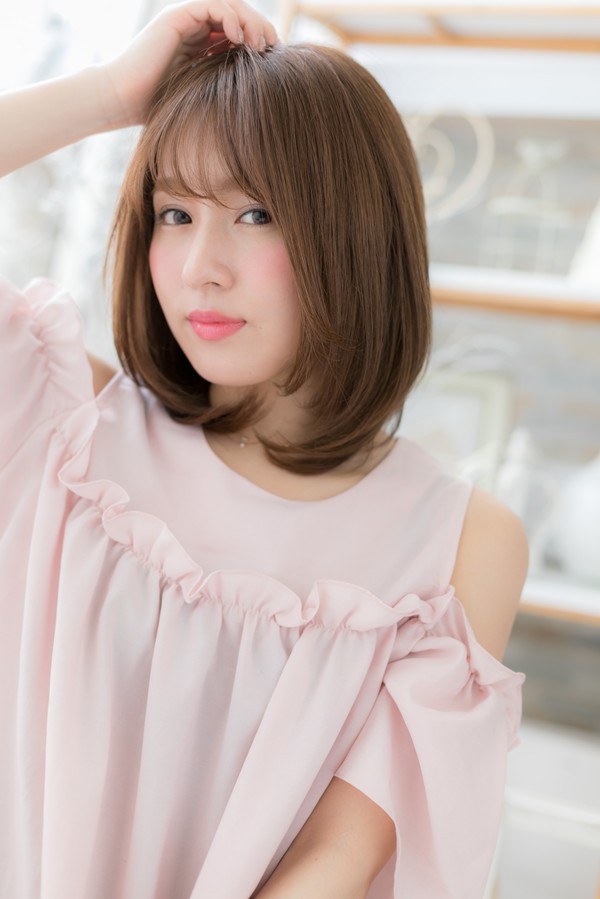 透け感あるカラーリングにツヤを仕込んで、ナチュラルなワンカールストレートヘアスタイルで大人女子のファション度UP♪シースルーバングの他、斜めバングや厚めバングも大人かわいいい。髪の色は暗めのグラデーションやベージュもおすすめ!40代のエラ張り対策にも◎(メイク担当:上尾店 中田)