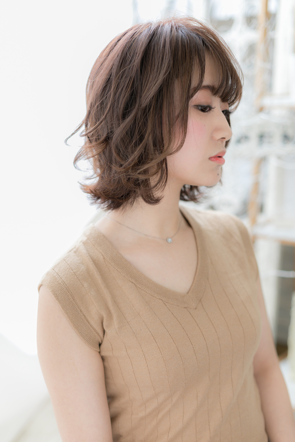 ウェーブなので朝はミストやバームでくしゃっと決まります/結べる長さなので今流行のラフな抜け感ヘアアレンジも/ナチュラルボブやフェミニンボブ,大人ボブや前下がりボブからのイメチェンに◎/20代/30代/40代/50代
