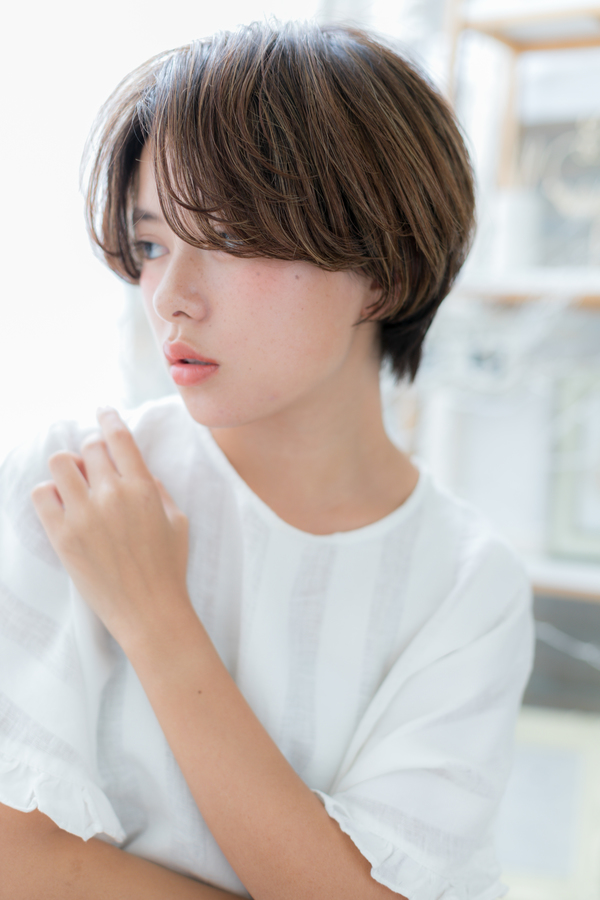 360度どこから見ても綺麗なシルエットを追及しました。ワンカールパーマをかけて簡単スタイリング。耳かけしたり前下がりの小顔シルエットで大人女子のコーデを完成。トレンドの丸みショートもおすすめ!ショートの前髪ありも前髪なしもOK。30代・40代にも◎(メイク担当:上尾店 中田)