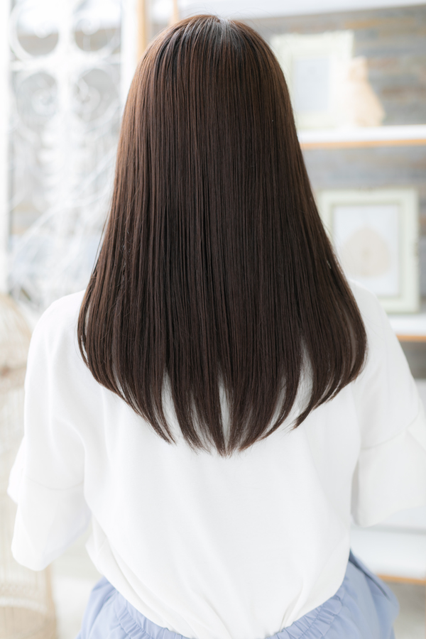しっとりまとまるワンカールストレート。ダークブラウンやマーメイドアッシュでナチュラル美人で大人女子のコーデを完成。髪の色はグラデーションやベージュでおすすめ!30代・40代にも◎(メイク担当:COVERHAIRGROUP棟方)