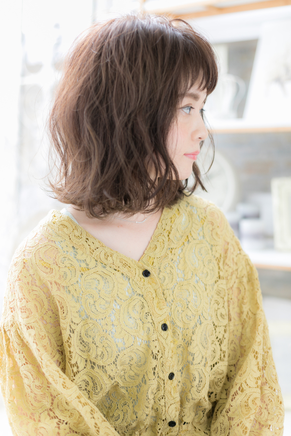 外国人風無造作パーマでクールに仕上げたふわミディは、ショートシースルーバングでガーリーな雰囲気で大人女子のコーデを完成。前下がりで小顔にしたり耳かけもモテヘアスタイルもGOOD。ミディアムヘアを際立たせるグラデーションやベージュカラーの暗めの髪の色もおすすめ!230代・40代にも◎(メイク担当:COVERHAIRGROUP棟方)