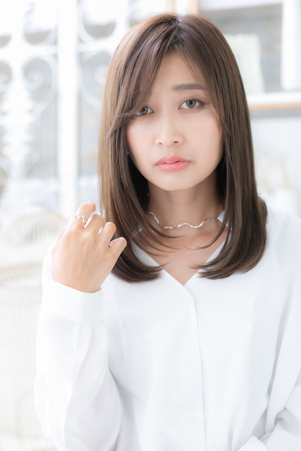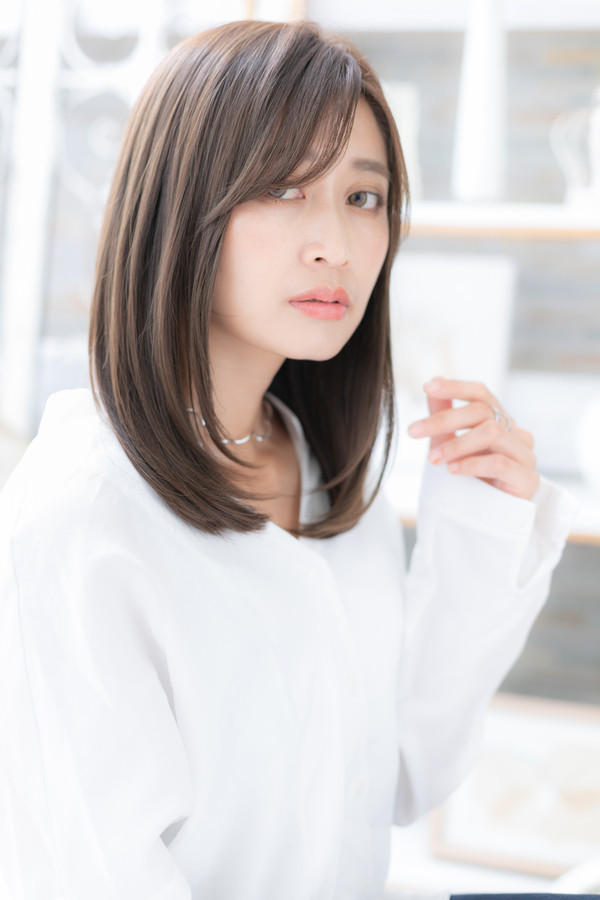 ツヤワンカールで好感度高めのヘアスタイル。手グシで自然にまとまる簡単スタイリングは働く女性やママさんや大人女子にGOOD。トリートメントしたようなカラーリングで髪の毛の悩みも解決!人気のカラーや思い通りの茶色もおすすめ!40代のエラ張り対策にも◎(メイク担当COVERHAIRGROUP棟方)