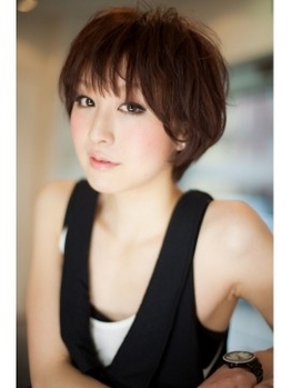 シンプルなショートなのに、女性らしさを感じられる、そんなイメージのショートです。あえて暗めのカラーをチョイスすることで大人な雰囲気と女性らしさを演出しました。
