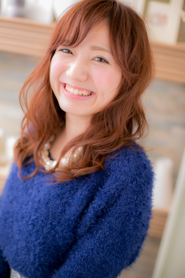 程よいボリュームのエアリーカールと明るめハッピーカラーで、モテオーラ全開の大人グラマラススタイルに☆顔周りのレイヤーと斜めバングで小顔効果も。厚めバングや耳かけもGOOD。簡単ヘアアレンジでパーティや二次会でもOK。無造作なくせ毛風スタイルも◎
