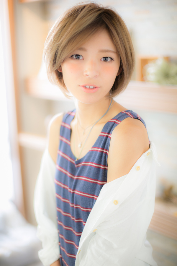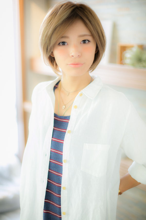 ショートにしたいけど,バッサリ切るのは抵抗がある人にもオススメな,女性らしさもあるショートボブなスタイル。ナチュラルなスタイルにハイトーンカラーでヌケ感もプラス☆
