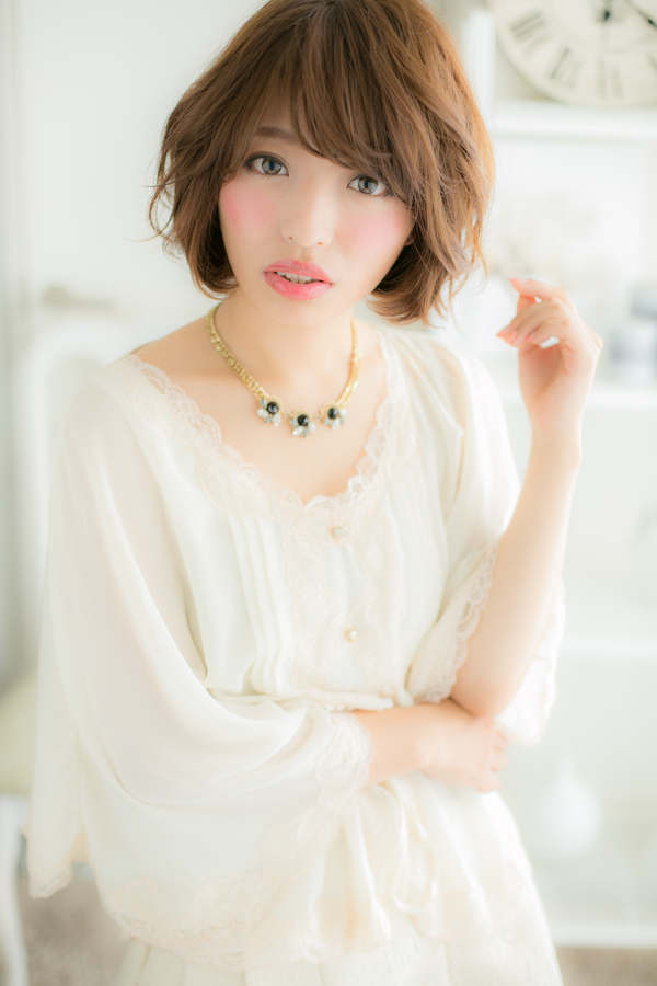 ぺたんとなりがちな方もナチュラルなパーマで可愛く解消!重さのあるシルエットの中で,動きと軽さをだしたオシャレ感たっぷりなほつれウェーブが◎ひし形フォルムと厚めバングで小顔効果も嬉しい。大人かわいボブスタイルには斜めバングや前下がりボブも☆