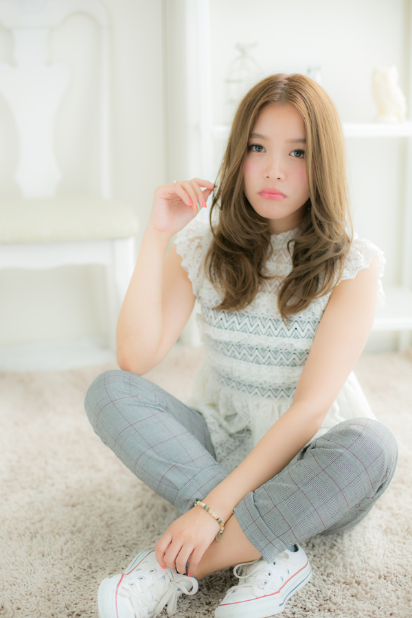 毛先メインにくるんとかけたパーマが女の子らしさたっぷりのスウィートなパーマスタイル。パサついた毛先もまとまり感がつくのでオススメです♪柔らかでツヤをだす,明るめのベージュカラー,ヌーディカラーマーメイドアッシュがオススメ。黒髪もグラマラスに☆