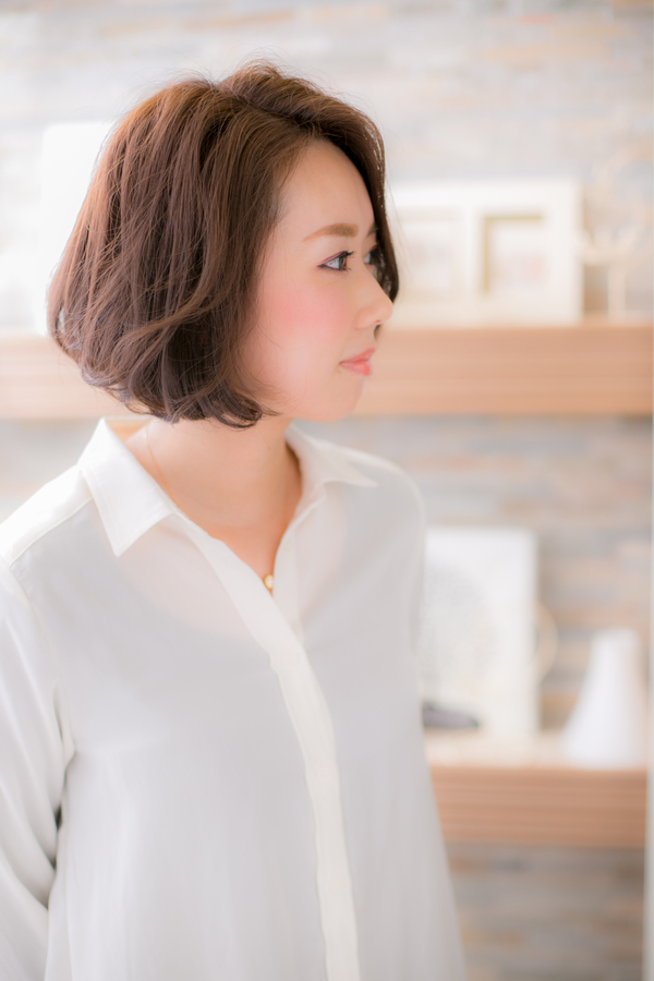 万能ボブです。ナチュラルなのに上品な雰囲気のボブ。毛先にランダムなワンカールをつけることで、毛先の動きが軽やかになります。カラーは透明感のあるミントアッシュで、軽い印象に☆大人カワイイをめざす方にオススメです。