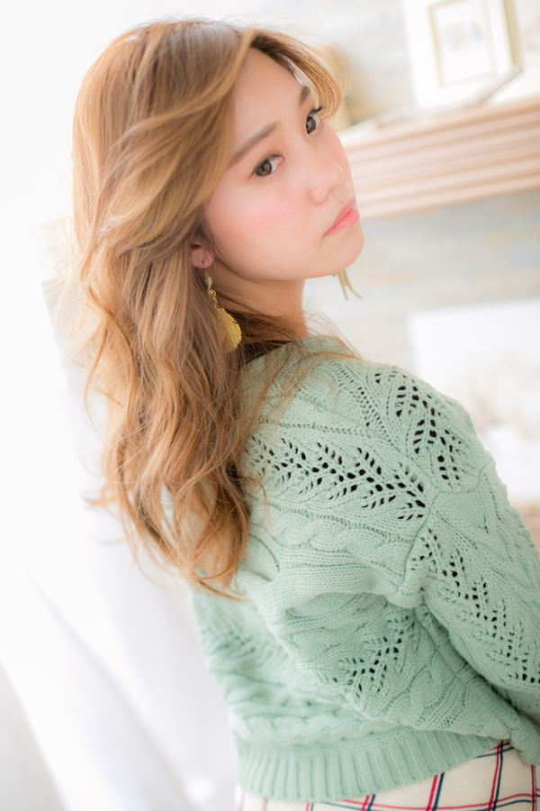 ラフでカジュアル、リラックス感たっぷりのゆるいウェーブに、全体に入れた細かいハイライトがオシャレな、大人カジュアルハンサムロングです。クシャっとした質感には、とびきりhappyなsmileが似合います☆☆