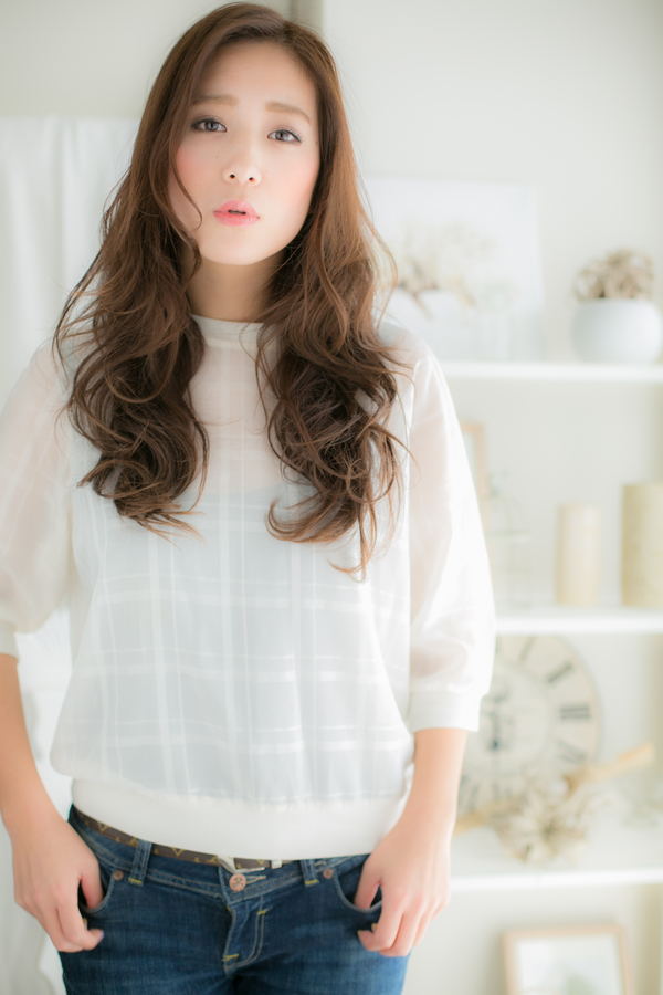 触れたくなる様なツヤカラーと,顔下からかけたパーマでヌケ感のある動きのあるロングスタイル。乾燥に気をつければ風で崩れても可愛くキマルので潤いはキープ☆グラマラスな質感は好感度もアップさせるのでメルティカラーも◎。モ―ブカラーで差をつけて♪