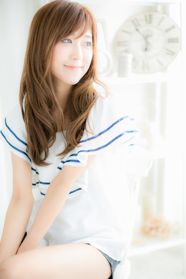 ほつれた様なヌケ感のあるウェーブが女性らしいフェミニンな雰囲気をだします。柔らかさのでる、ツヤ色カラーでより空気感UP♪