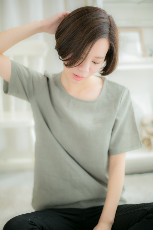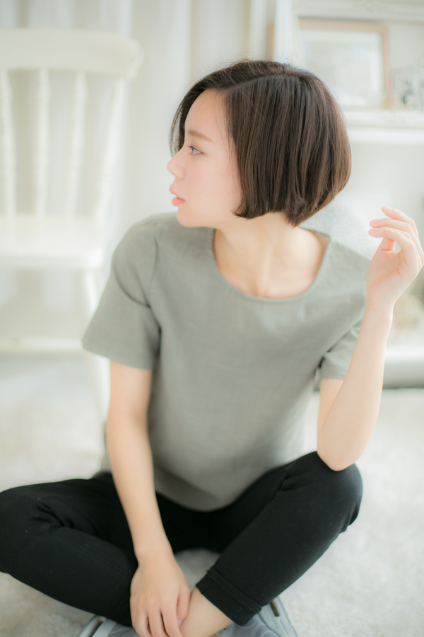 シンプルなのにオシャレ☆絶妙なラインのナチュラルなローレイヤーのボブ。全体に丸みあるコロンとしたシルエットと、ツヤ感あるしなやか質感でフェミニンな印象に。目の表情をチラりと見せる長めバングが、目力UPと小顔効果を発揮します♪