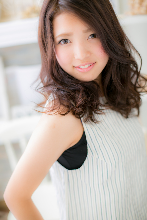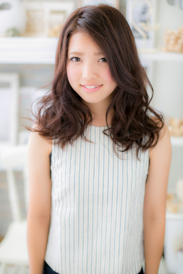 Aラインシルエットのミディアムウェーブスタイル。顔周りの長さも残しているので、どんな顔型の方にも似合います。まとまりやすいデジタルパーマがオススメです!