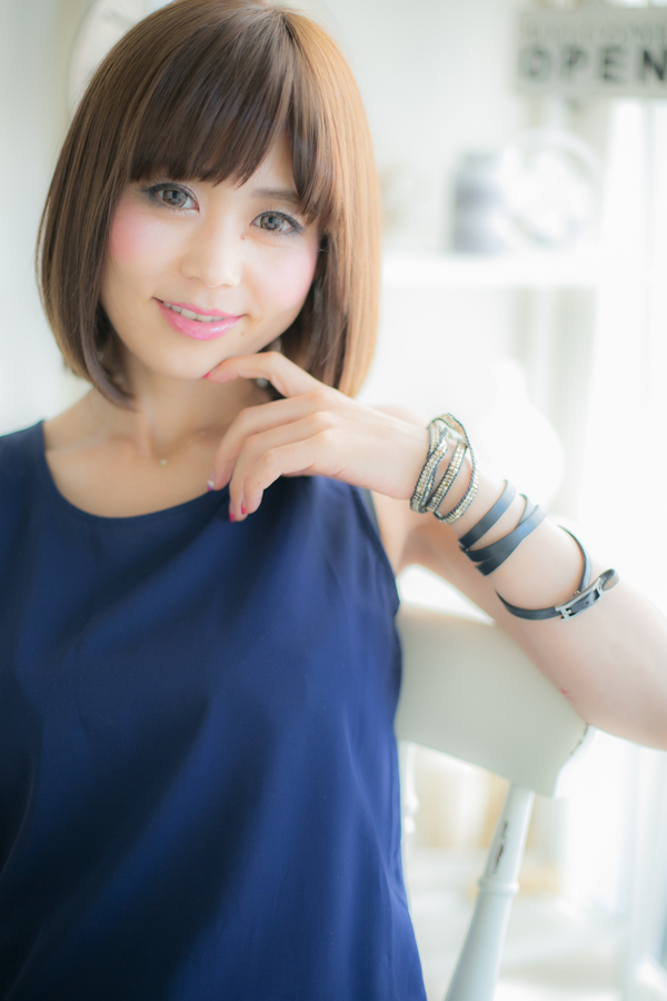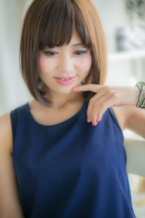 眉ラインでつくった前髪が目力を引き立たせてくれるさらさら艶が決め手のつやさらボブストレート。雨が降ってもさらさらをキープ♪少し前下がりにしてもカッコイイ。