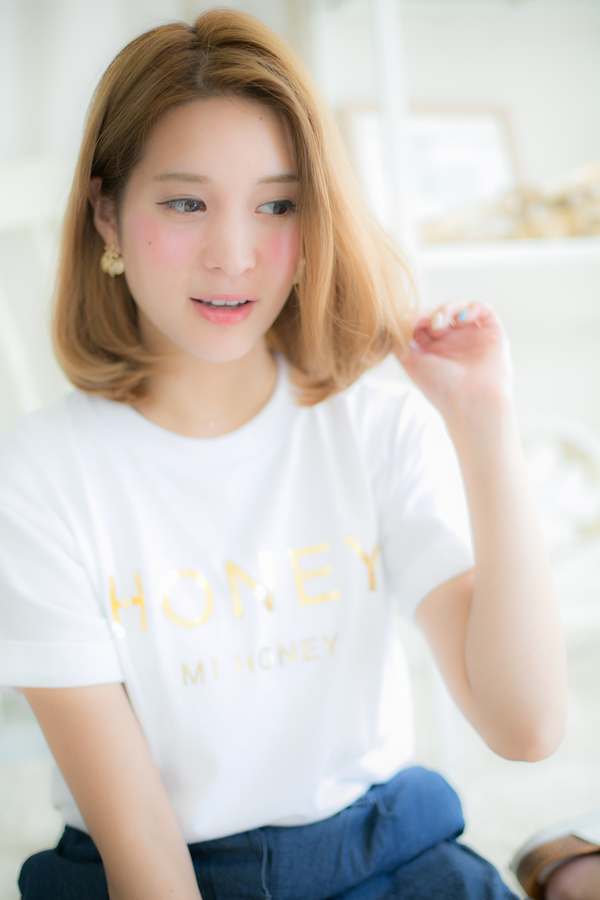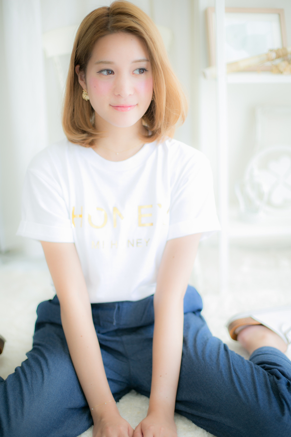 毛先のパーマでふんわり少し大人女子なニュアンスとハイトーンカラーの元気なイメージがマッチしたスタイルです☆顔周りもパッと華やかに☆