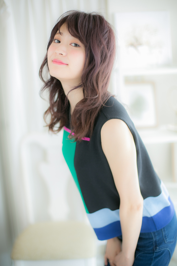 脱甘ヘアを目指す女性にピッタリの、大人カッコイイスタイル。しだれ落ちるウェーブに、メリハリあるレッド系のカラーを。目の上ギリギリの斜めバングで目力を強調して!ルーズで無造作なニュアンスロングにツヤカラーで、大人の女性のこなれ感が漂います。