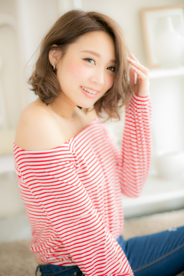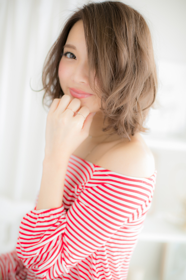 ドライ後ワックスをもみこむだけの簡単スタイリング。作り込まない無造作なエアリー感がポイントなので、手ぐしでくるんとカールさせるだけでOK!ふわミディスタイルには、斜めバングや厚めバングも相性◎。