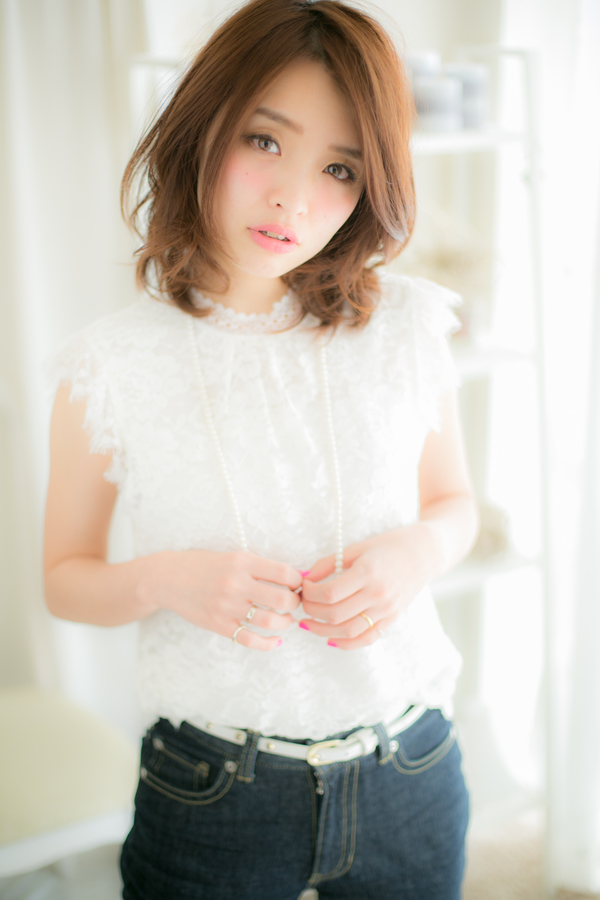 斜めバングが大人かわいいグラマラスなセミディスタイル。毛先にはハネてもいいルーズなパーマをかけているので、伸ばしかけの方にもGOOD!グラデーションカラーやマーメイドアッシュがおすすめです。