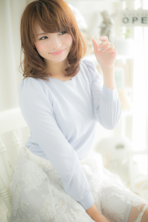 女子力UP!内巻きフォルムのモテセミディ♪顔のラインを包み込むくびれカールで、ぐっと華やかな表情に。