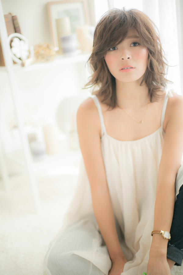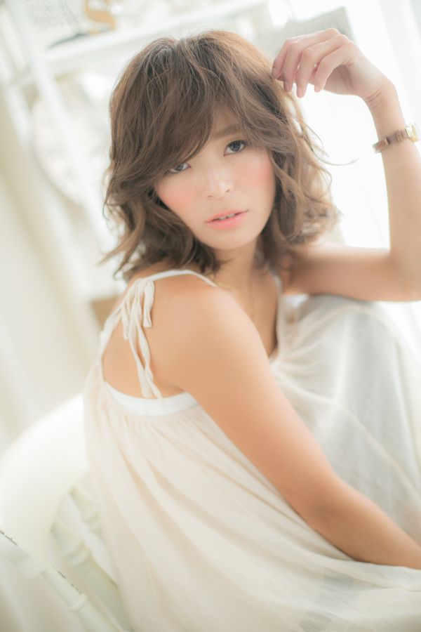 しだれ落ちる斜めバング、ふんわりしたトップ、無造作な分かれ目、外国人みたいなクセ毛風のゆるカール…計算された絶妙なふわぼさ感が、ラフでナチュラルな余裕ある大人女子を演出してくれます。
