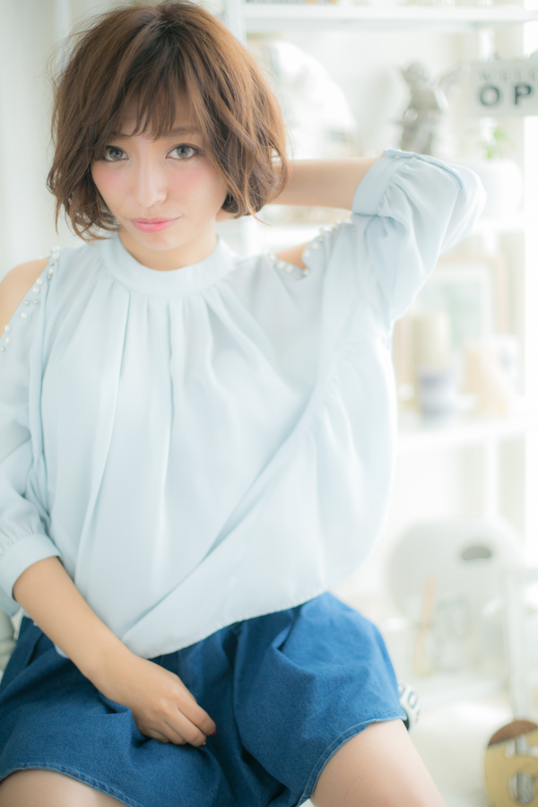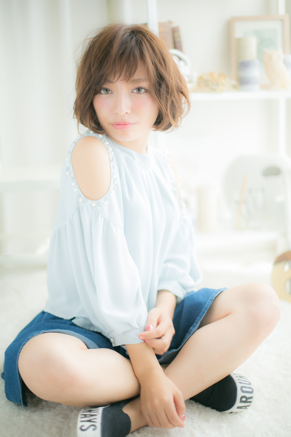 根元に空気含ませるようにドライ。全体にくしゅっとワックスをつけるだけの簡単スタイリングで決まる!ふんわりマシュマロみたいなフェザーボブ。