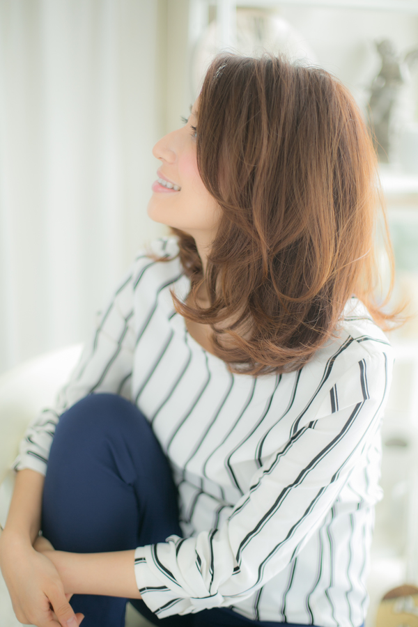 ノーバングでキリッとキメることで、凛とした知的な大人女子の雰囲気に。肩上の毛先のカールでくびれをつくって、クールな中にフェミニンな優しさとやわらかをプラス。オフィスでもデートでも女子会でもOK!な好感度の高い優秀スタイルです。