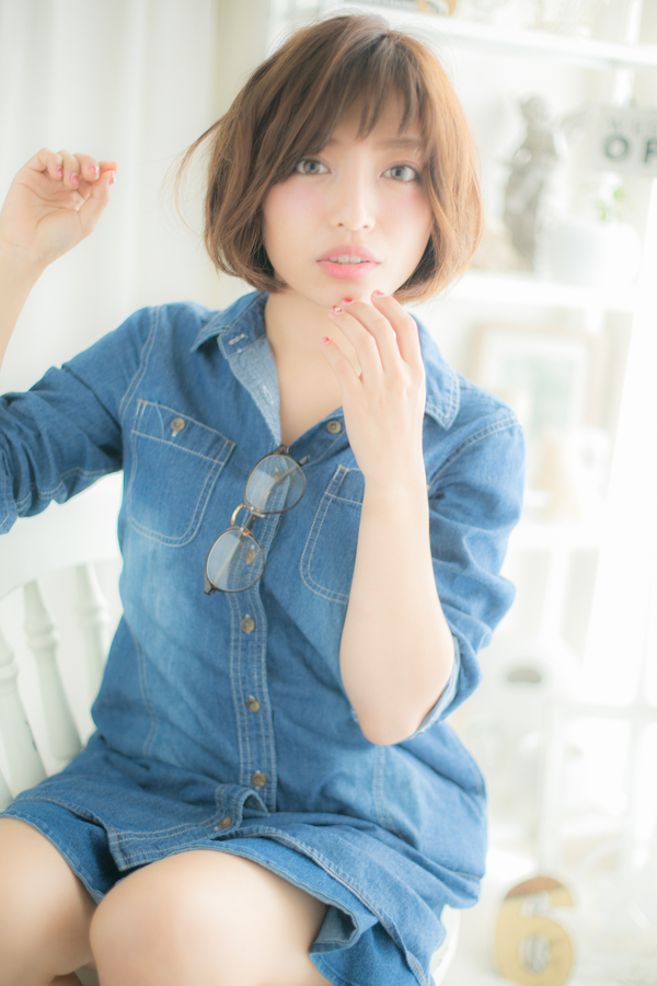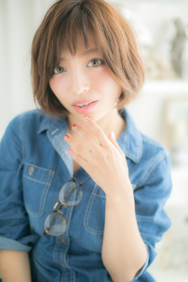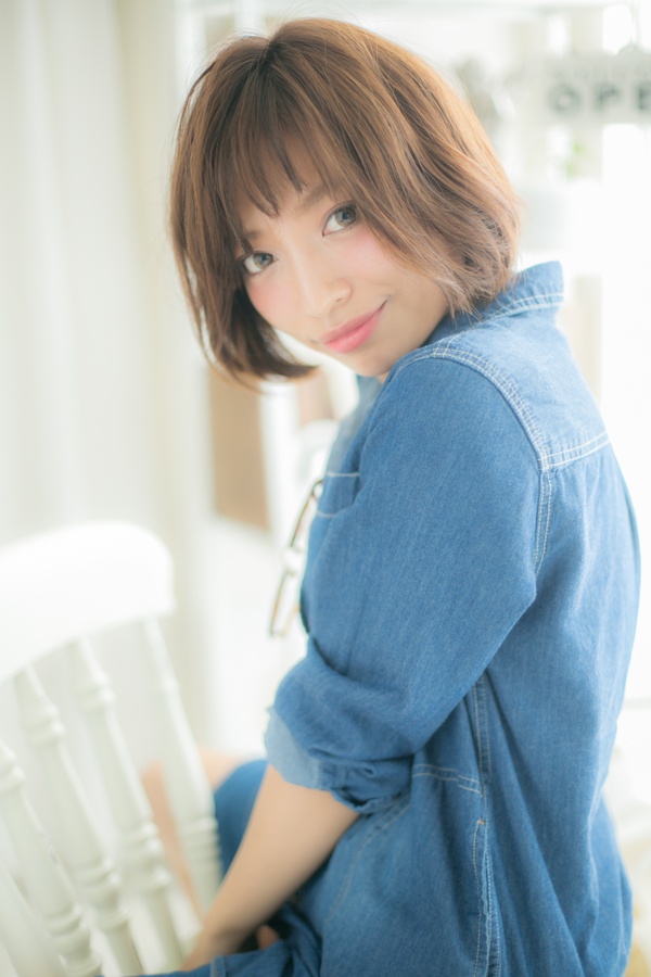 前髪は短めの透け感あるバングで明るい表情に見せます☆無造作にセットしてクセ毛風に見せるのもナチュラル感がでてかわいい。