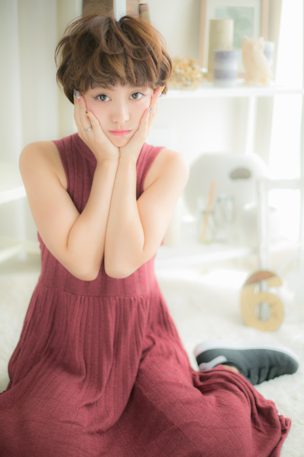 前髪は眉ラインで顔だちをキュートに☆おしゃれも好感度もアップ。ショートなので、カラーで明暗をつけるのも動きがでて◎