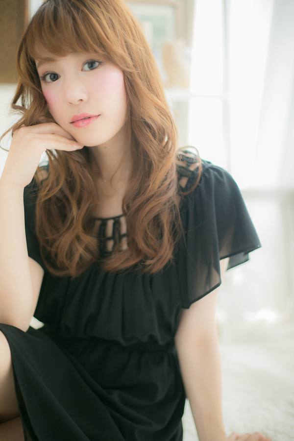 ゆるく大きめのウェーブが女っぽさをUPさせます♪前髪にもゆるくパーマがかかっているので、フェミニンな女性らしさがキラリ☆