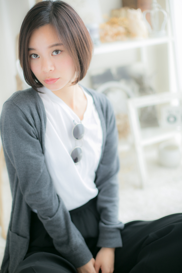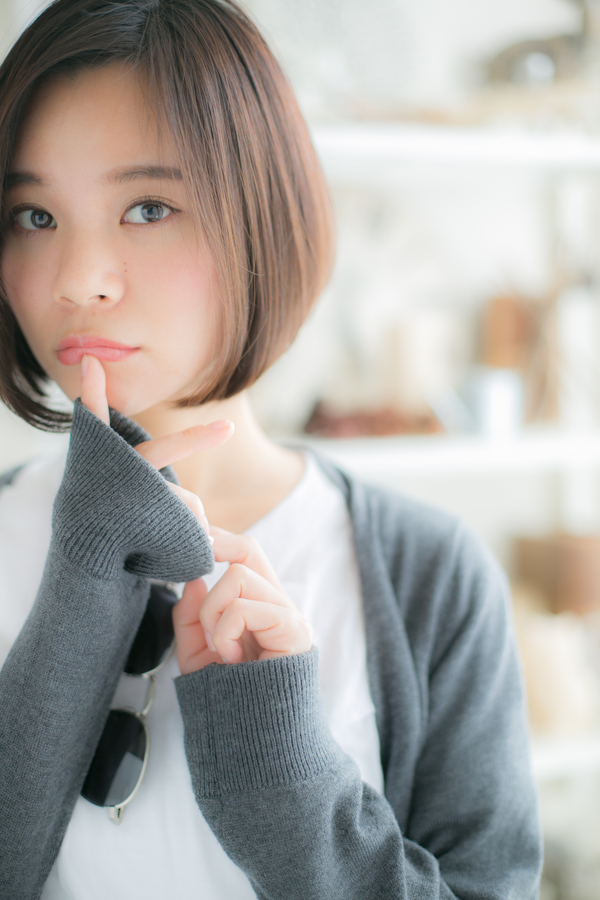 ツヤ感たっぷりのクールなナチュラルなボブ。シンプルな分、似合わせカットの技術が際立ちます。前下がりで顔の輪郭をカバーして、マニッシュな雰囲気に。デキる女風スタイルはオフィスでも一目置かれる存在に。