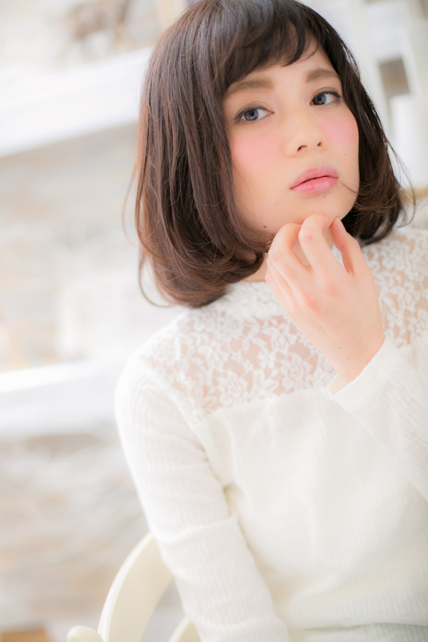 ショートバングが目を引くモダンショートボブ。毛先のワンカールが動きをつけてふんわり感を出しています。短すぎないショートバングならチャレンジしやすいので、他の人と少し差をつけたい方にオススメです。