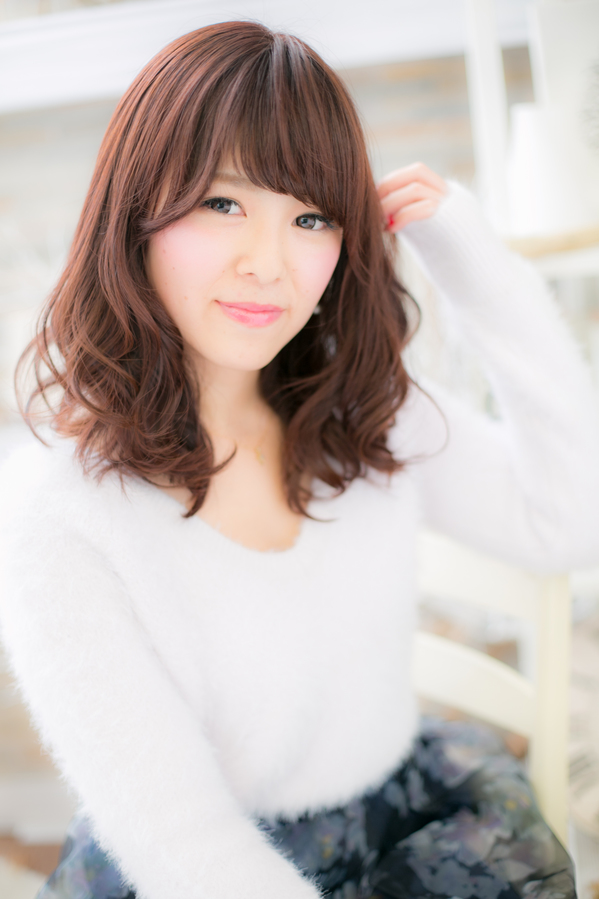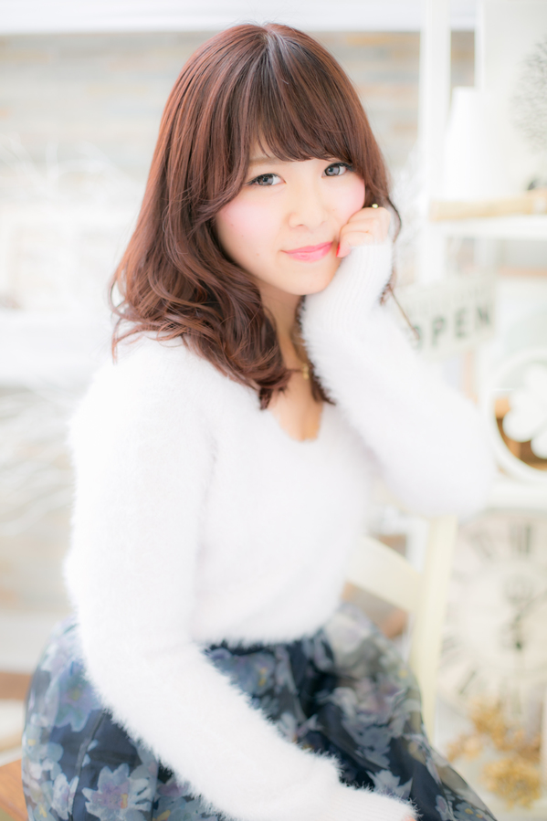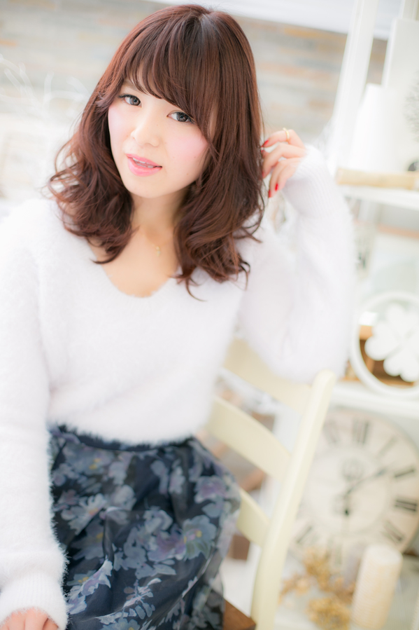 甘めのカールスタイル。長いバングで大人可愛く、短めでガーリーに、前髪のニュアンスで印象を変えられる万能スタイルです。また、毎日コテで巻くのが疲れちゃった方やパーマをしばらくかけていなくイメチェンしたい方にも♪