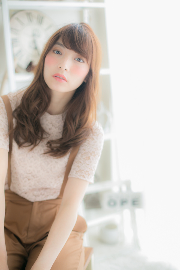 たっぷりと揺らめくカールがお人形さんみたいにカワイイ、王道のガーリーロング。女の子なら一度はやってみたい憧れのスタイル♪ランダムカールでナチュラル感を残し、親しみやすい雰囲気に。長めの前髪は目力を強調してくれるのでモテ顔に☆