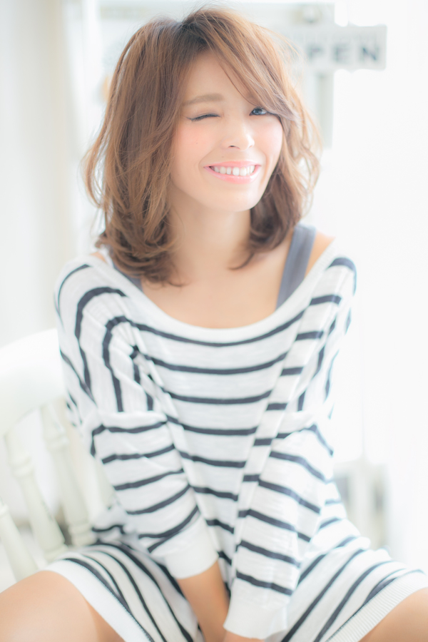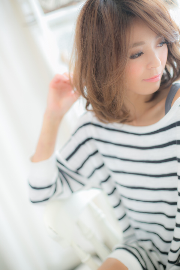 ゆるやかなくびれカールとサイドに流した斜めバングで、イイ女度抜群の抜け感ある大人セミディに。オフィスでもデートでも女子会でもOKの優秀スタイル。