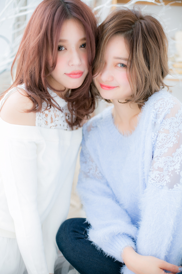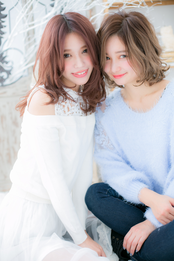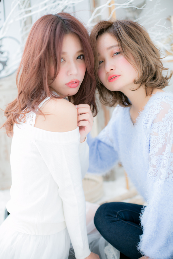 左:センターパートで輪郭カバーして小顔見せで大人女子のファション度UP!斜めバングや厚めバング、耳かけも大人かわいい♪右:くせ毛風パーマのふわミディ。ナチュラルボブやフェミニンボブ、大人ボブや前下がりボブからの伸ばしかけにオススメ!ミディヘアを際立たせるグラデーションで髪の毛の悩みも解決!人気のカラーやピンク系のカラーもおすすめ!30代・40代にも◎