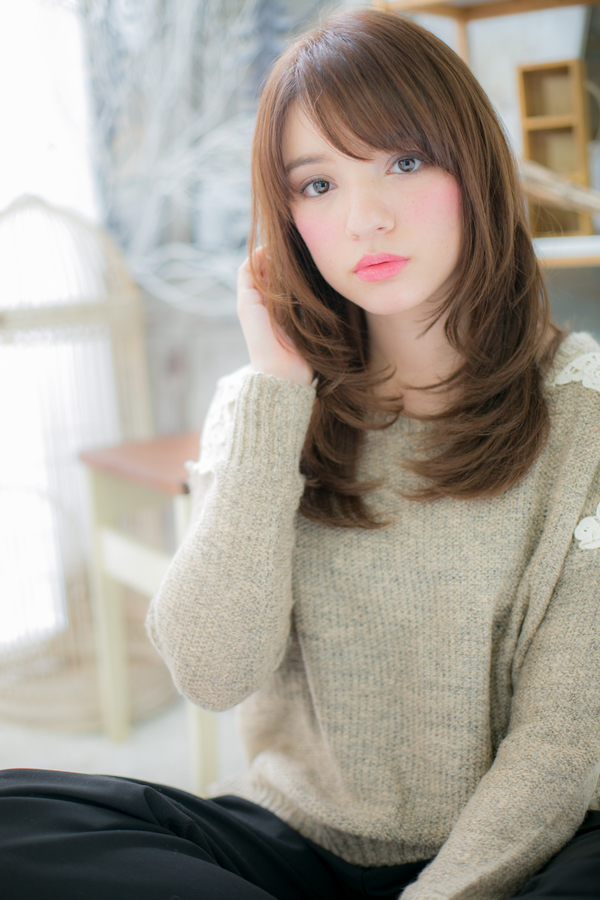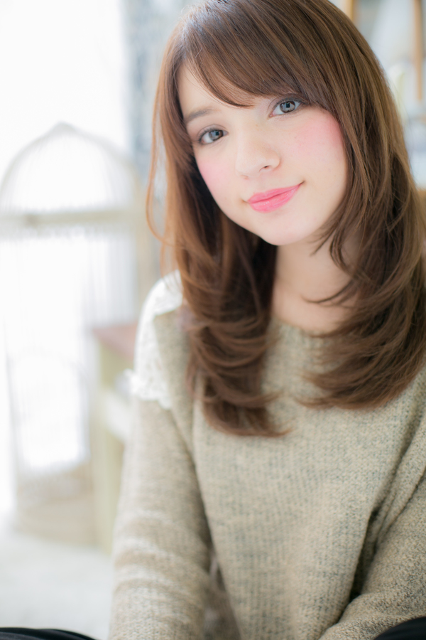 レイヤーで重層感を持たせたエアリーワンカール。毛先のCカールで、ふんわりとしたフェミニンなストレートスタイルに。顔周りを優しく包み込んで小顔効果もバッチリ。